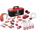 - Includes: (1) S1017 Durable lockout toolbox, (4) 410KARED Zenex™ thermoplastic padlocks, (1) S3081 Adjustable ball valve lockout device, (1) S3476 Small wedge ball valve lockout device, (1) S806 Cable lockout device, (1) S856 Retractable steel cable, (1) 493B 120/240V Circuit breaker lockout device, (1) 491B 480V Circuit breaker lockout device, (1) S3823 480/600V Circuit breaker lockout device, (1) S3822 480/600V Circuit breaker device, (1) S3821 120/240V Circuit breaker lockout device, (1) 480 Gate valve lockout for 1" to 3" diameter handles, (1) 481 Gate valve lockout for 2" to 5" diameter handles, (1) 482 Gate valve lockout for 4" to 6.5" diameter handles, (2) 420 1" Steel jaw hasp, (2) 421 1.5" Steel jaw hasp, (1) 453L Hoist cover, (1) 487 Small rotating plug lockout, (1) 488 Large rotating plug lockout, (1) S2005 Plug prong lockout, (1) 496B Wall switch cover, (1) 497A "Do Not Operate" laminated lockout tag packs (12 tags per pack)